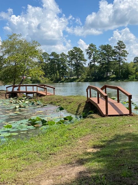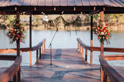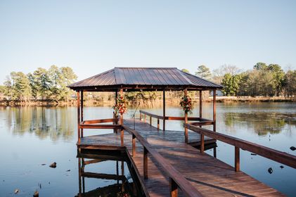 The Venue is nestled in the woods of Big Sandy, Texas on 17 acre with a private 9 acre lake. We have a large 5 bedroom, 4 1/2 bath house with a spacious bridal/honeymoon suite that has a living room, full kitchen and private entrance. The venue has a beautiful dock to say your vows on and a sprawling area with astro turf for the guests to be seated on. Don't forget the new covered dance floor! There are also 4 Tiny houses that sit directly on the lake available for rent on Air BnB. Call for a tour of the venue today!